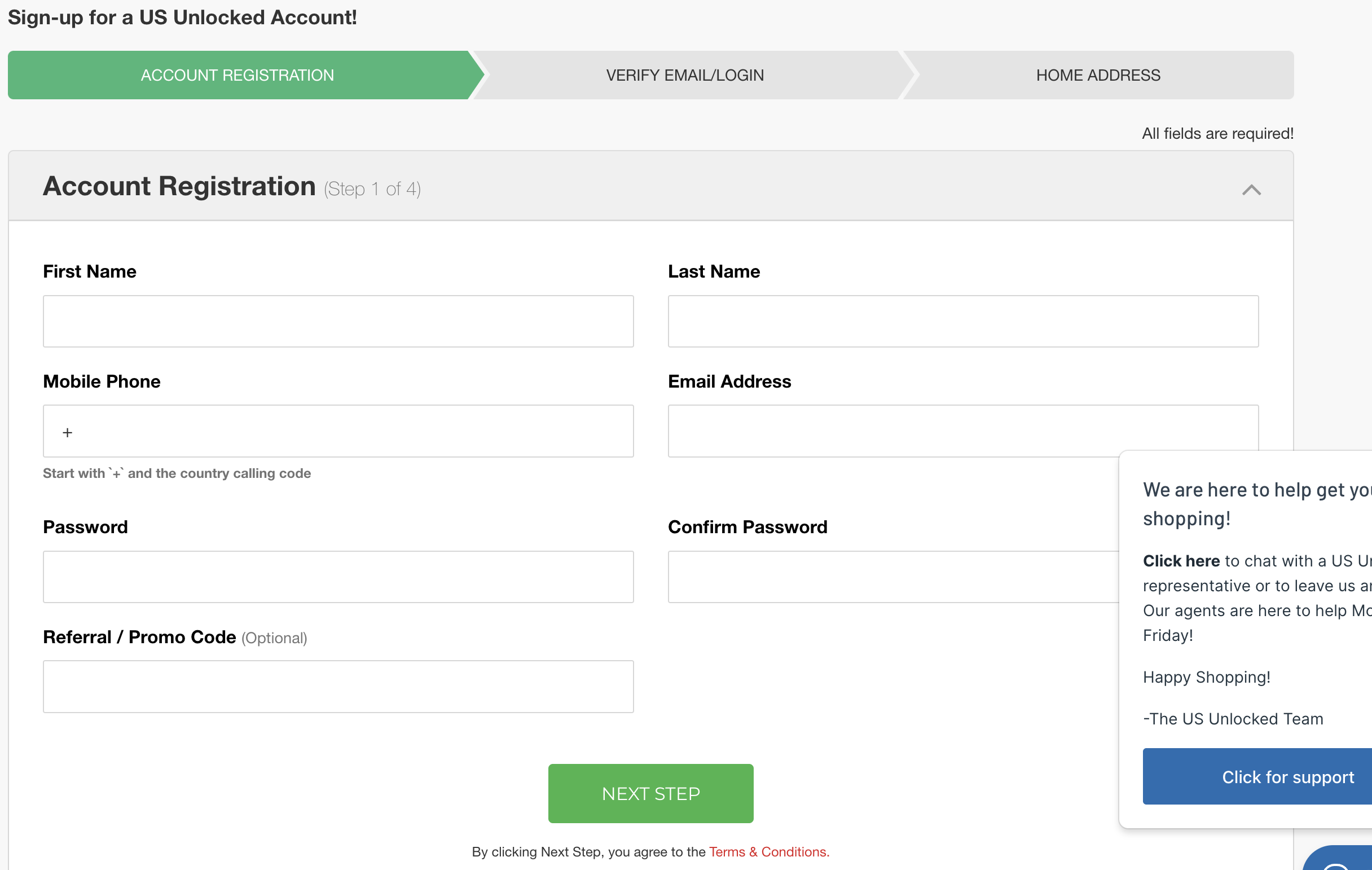 这一步没有太多可说, 不过在打开网站时可以使用我的邀请链接打开Yuhe’s invitation to usunlocked, 应该会有一定费用上的优惠.