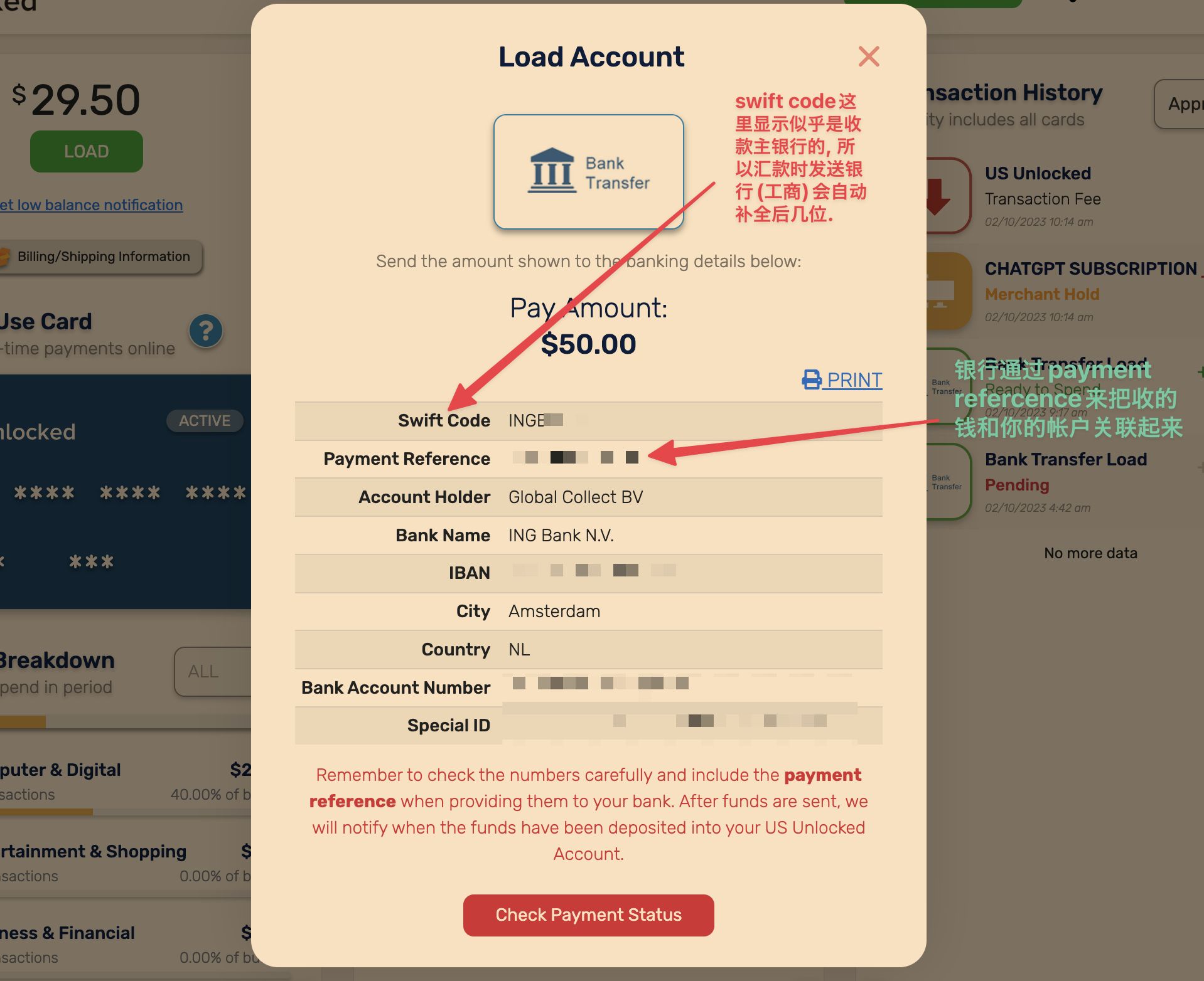 特别要注意两个字段, swift code和payment reference. 如果这个错了, 而你又忘了怎么错了, 这个钱可能就白汇了.