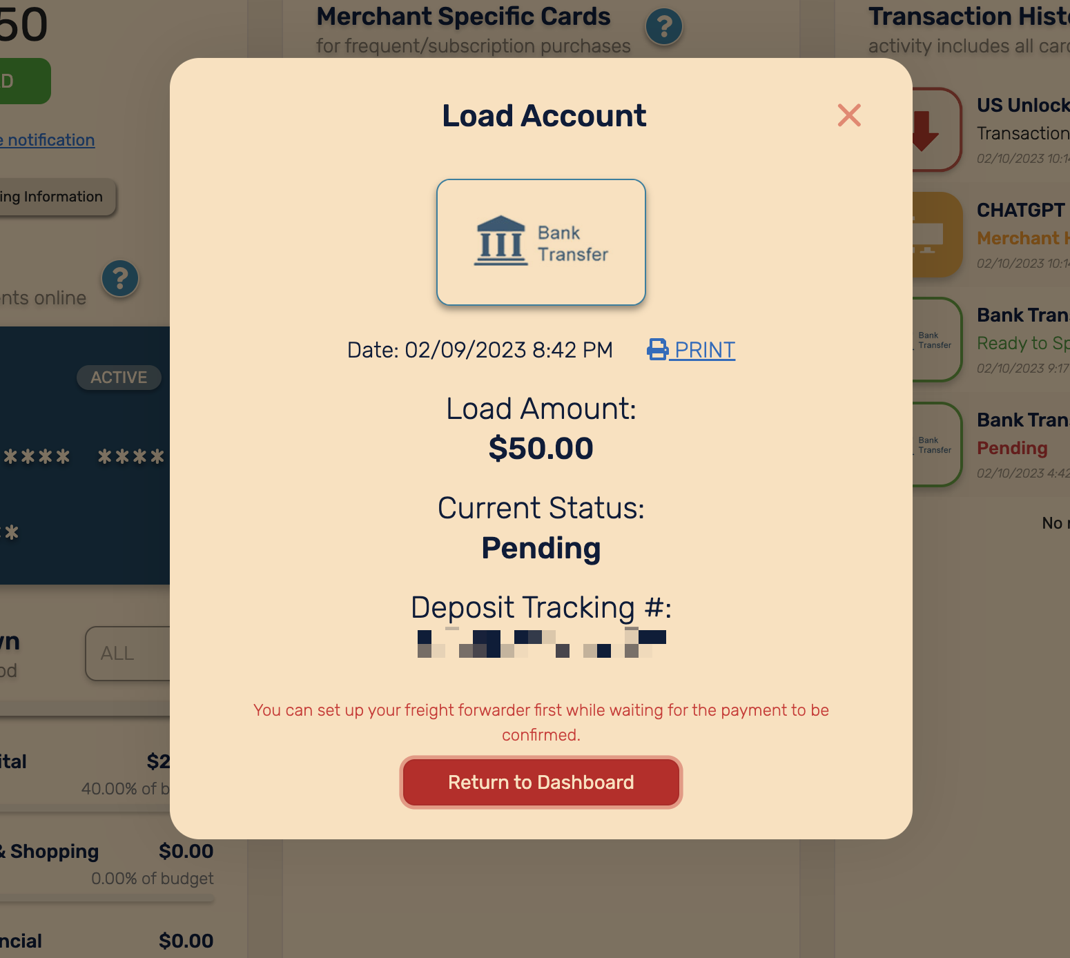 激活虚拟信用卡之后, 该服务商还会给你一个美国的中转地址, 往这个地址发的商品会中转运输到国内.
