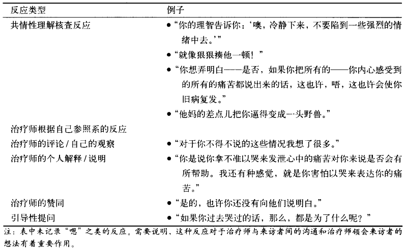在这段对话中,当事人在说出自己想表达愤怒而不能的时候,陷入较深入的强烈的情绪,但是罗杰斯此时使用了一句脏话比较夸张放肆地表达出患者内心的体验。但是注意,罗杰斯此时代替当事人表达了其情绪,罗氏在希望通过诱导,通过树立一个例子来鼓励当事人效仿,然而其使用的字眼,对当事人来说,仍然是过激的,对当事人造成了压力,当事人在曾经表达过自己出于教养和礼节,所以不愿意也不能表达愤怒,罗氏此刻的反应,在其他的心理咨询流派中很常见,但是在罗氏的生涯中却出现较少。