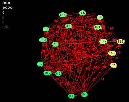 - 对于每个结点,计算与其他结点的距离,并将这个距离与弹簧的理想距离加权比较,从而得到这个结点的能量值