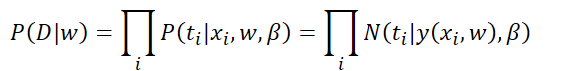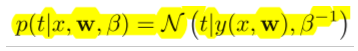 对于一个样本点而言,给定x的情况下,目标值大致出现在红线周围,并以高斯分布围绕以对应的y(x0,w)为均值。
